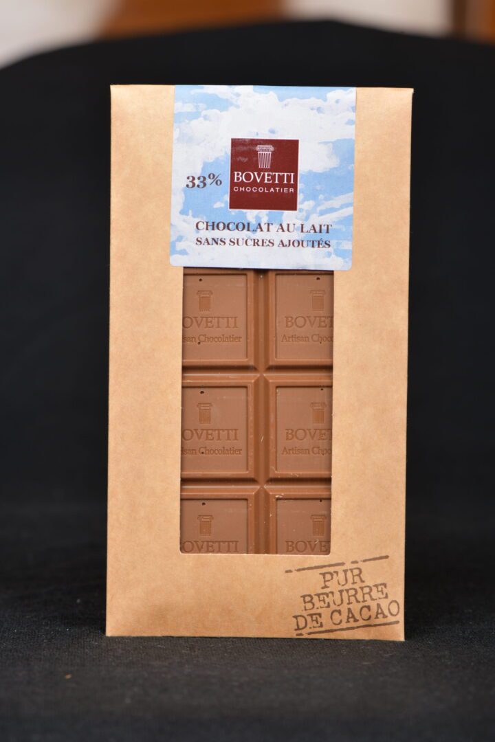 Mléčná čokoláda s podílem kakaové sušiny minimálně: 33%, (sladidlo: maltitol, sušené plnotučné mléko, kakaové máslo, kakaová hmota, emulgátor: sójový lecitin, přírodní vanilková aroma). Obsahuje cukry přirozeně se vyskytující v mléku.